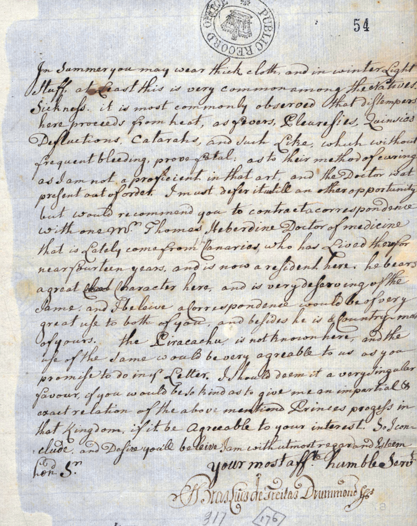 Formal ties were established in 1519 when Thomas Drummond, a kinsman of the Chief, visited Madeira and became acquainted with the Portuguese family. This led to a formal exchange between Manuel Afonso Ferreira Drummond and the Chief, Lord David Drummond, who issued a letter recognising their common Scottish ancestry. Subsequent generations maintained this link through further correspondence: